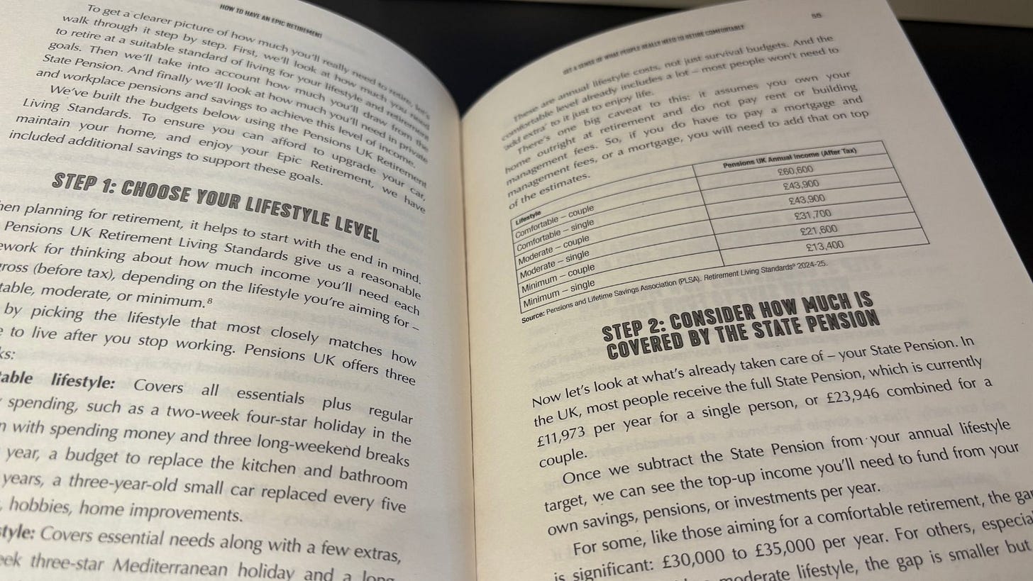 Today I’ve got a little treat for you — a short extract from How to Have an Epic Retirement – the UK Edition. This comes from Part Two of the Money section, where we get into the good stuff: working out what you actually need to live well in retirement.